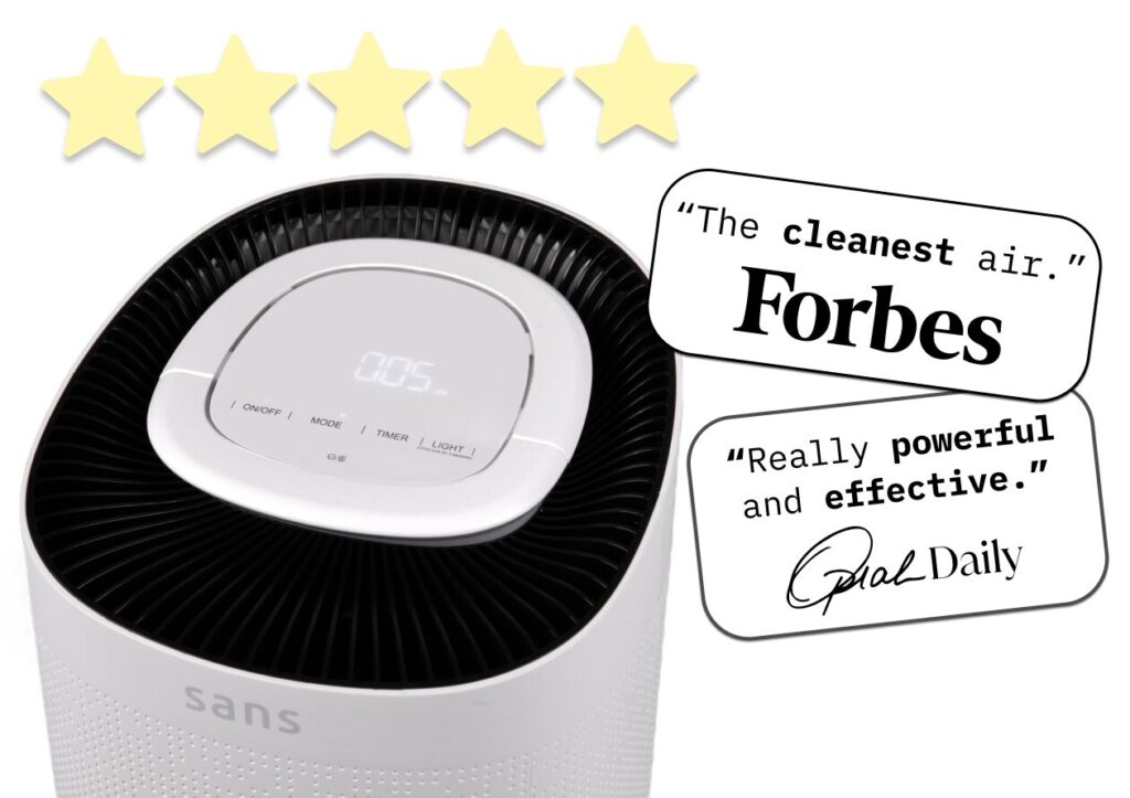 It’s the same air purifier that caused Reader’s Digest to write: “If you have allergies, pets, or a busy household and want to improve your air quality, the Sans Air Purifier is a great pick. It’s easy to use, looks nice, ultra-quiet, and honestly, it just seems to get the job done.”
